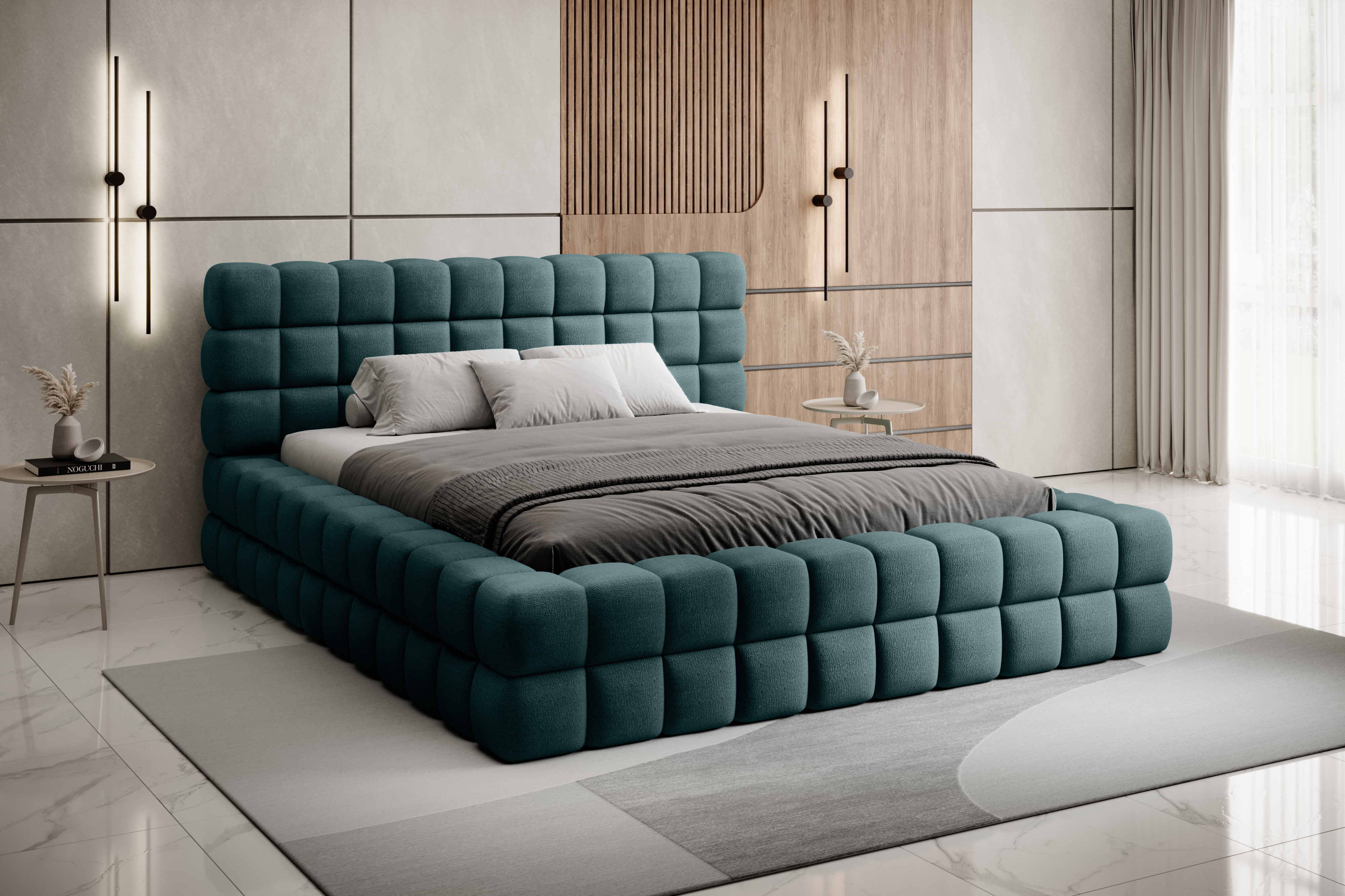 Dizzle krevet je moderno i elegantno rješenje za spavaću sobu. Pažljivo dizajniran, neprimjetno spaja stil i funkcionalnost. Izrađen od visokokvalitetnih materijala, ispunjava očekivanja u pogledu udobnosti i estetike. Nudi tri različite mogućnosti širine, omogućujući prilagodbu na temelju individualnih preferencija. Prepoznatljiv oblik nalik kocki dodaje jedinstven karakter spavaćoj sobi, dok crne sintetičke noge osiguravaju stabilnost.