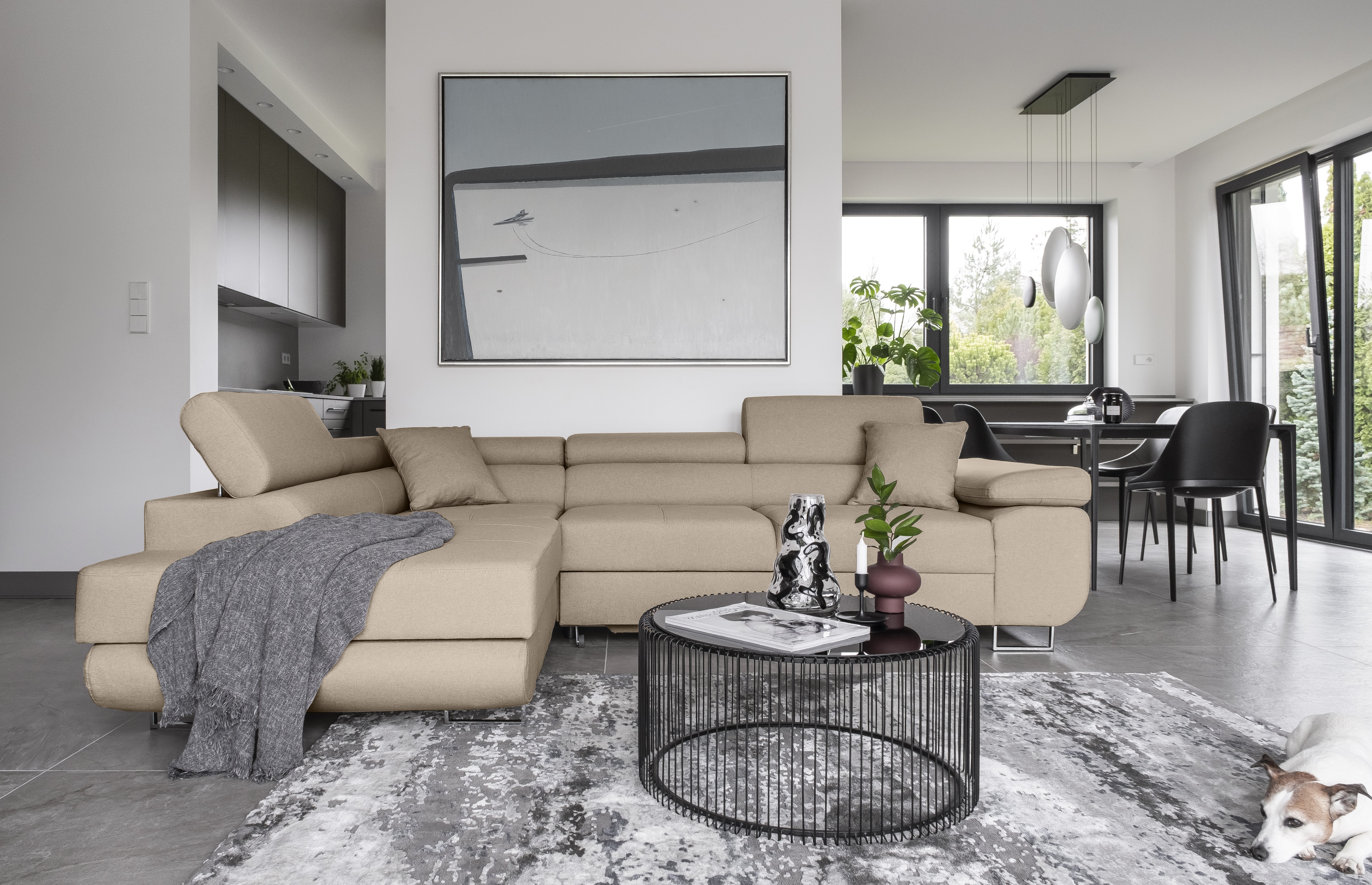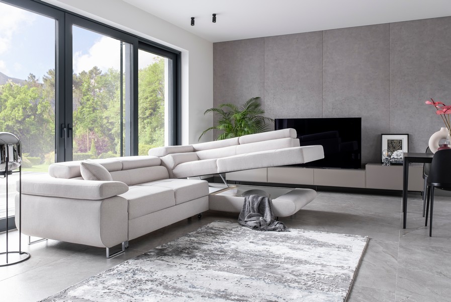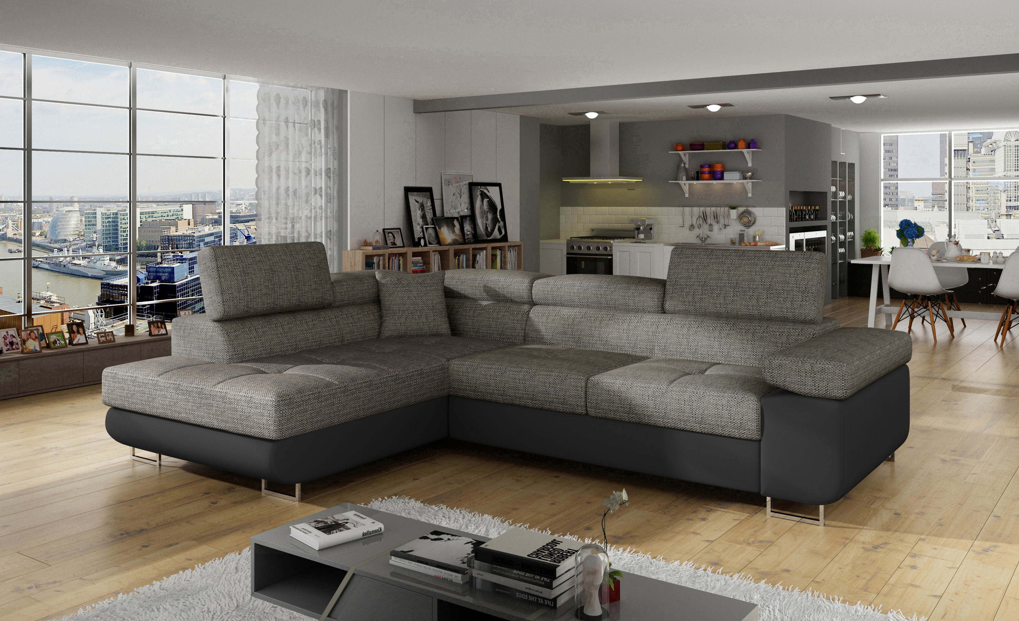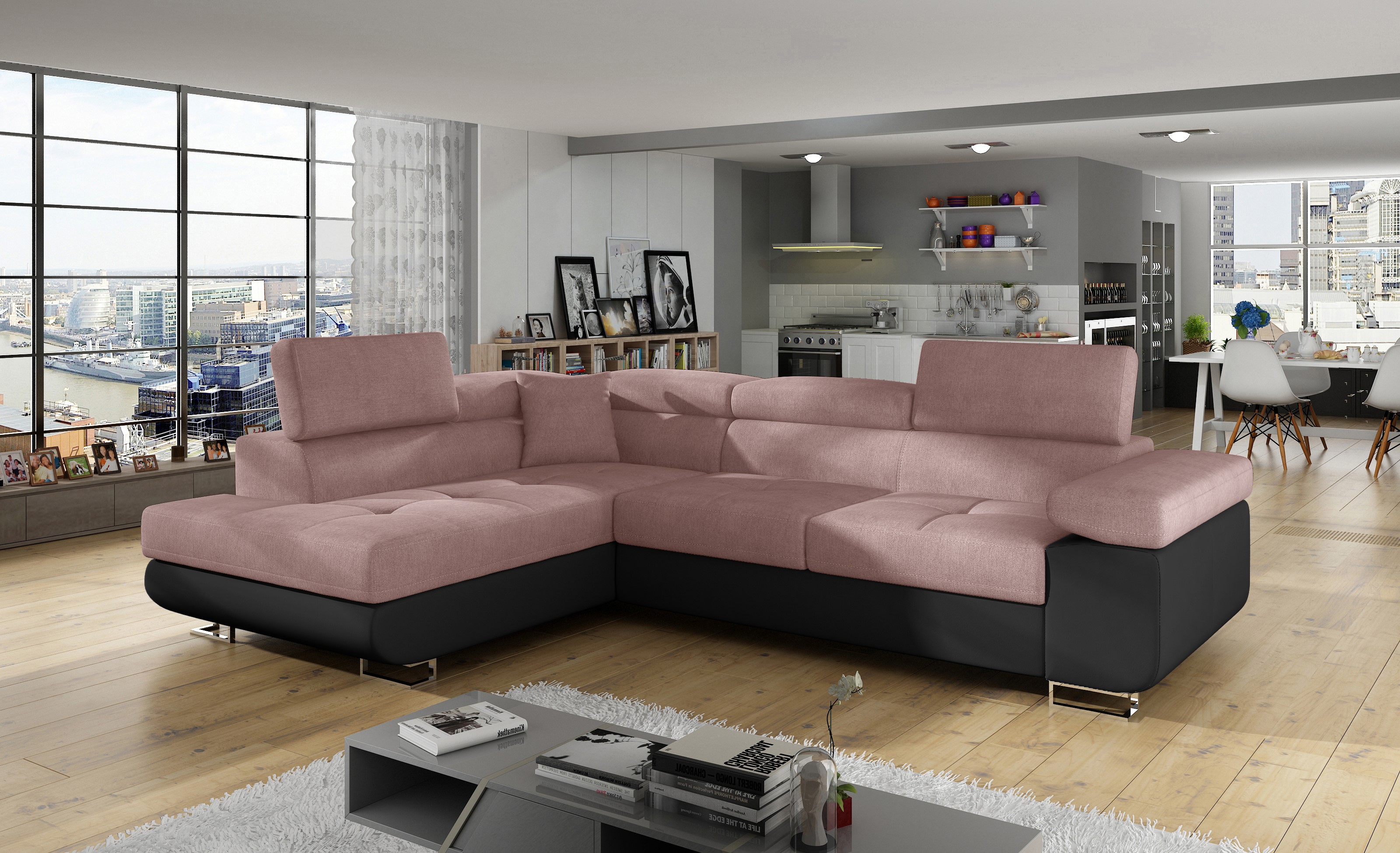 Anton je višenamjenski i prostrani kutni kauč na razvlačenje izrađen u modernom stilu. Sinonim je za visoku kvalitetu i maksimalnu udobnost, zahvaljujući širokom sjedalu dubine 56 cm i iznimno elastičnoj pjeni T3030. Anton, dimenzija 272 x 203 x 85 cm s velikom površinom za spavanje od 123 x 210 cm, znači dobar san. Namještaj također ima veliki pretinac za odlaganje posteljine. Na maksimalni učinak percipirane udobnosti utječu, između ostalog, visoki, podesivi nasloni za glavu, široki nasloni za ruke, kao i metalne noge visoke 9 cm. Ako vas zanima što još Anton nudi - potičemo vas da odaberete naš kutni kauč na razvlačenje1799.99