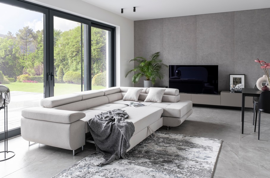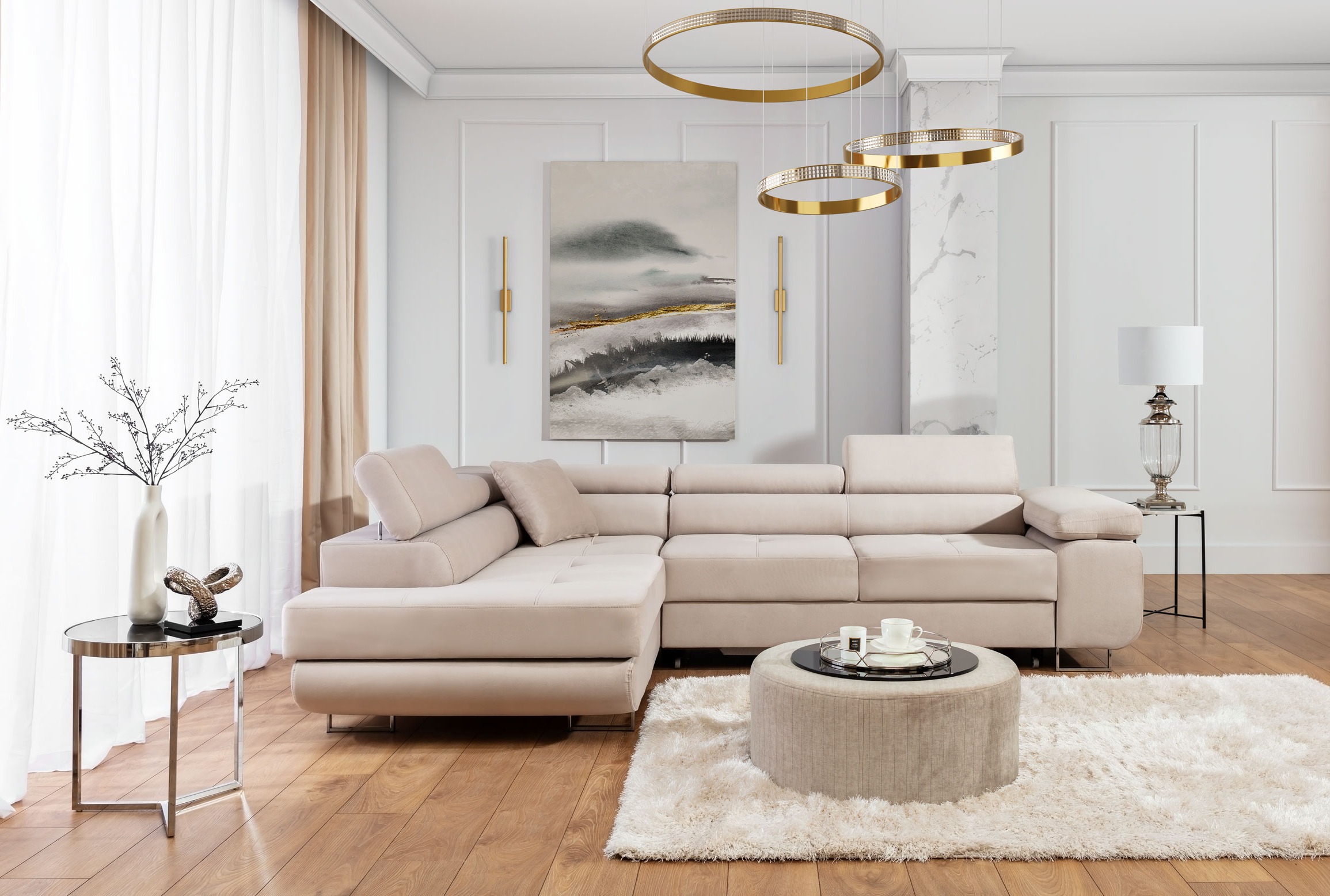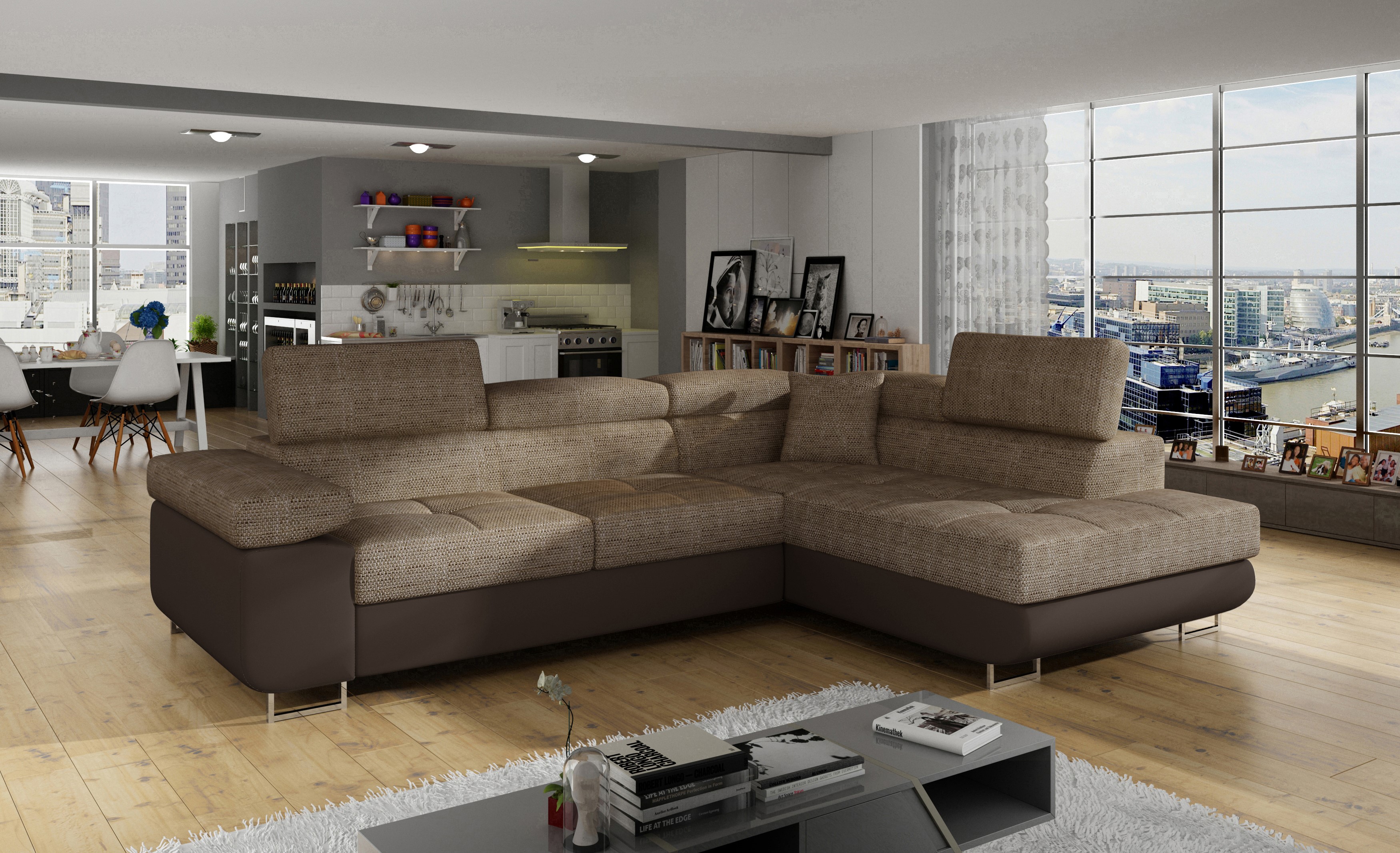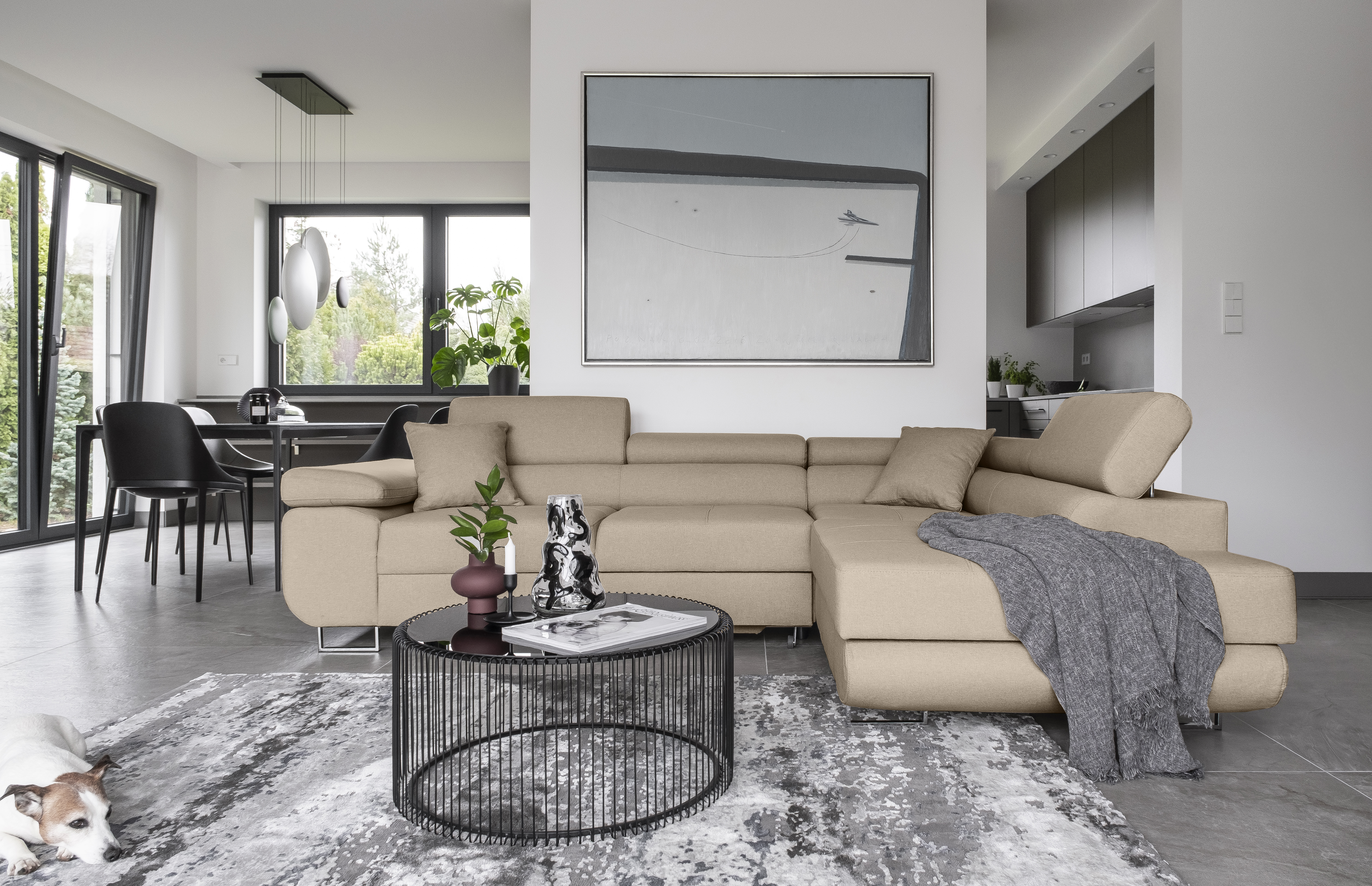 Anton je višenamjenski i prostrani kutni kauč na razvlačenje izrađen u modernom stilu. Sinonim je za visoku kvalitetu i maksimalnu udobnost, zahvaljujući širokom sjedalu dubine 56 cm i iznimno elastičnoj pjeni T3030. Anton, dimenzija 272 x 203 x 85 cm s velikom površinom za spavanje od 123 x 210 cm, znači dobar san. Namještaj također ima veliki pretinac za odlaganje posteljine. Na maksimalni učinak percipirane udobnosti utječu, između ostalog, visoki, podesivi nasloni za glavu, široki nasloni za ruke, kao i metalne noge visoke 9 cm. Ako vas zanima što još Anton nudi - potičemo vas da odaberete naš kutni kauč na razvlačenje1799.99