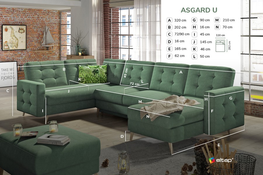 | Naziv proizvoda | Kutna garnitura Asgard U s ležajem i spremnikom - 202x320x90 cm |