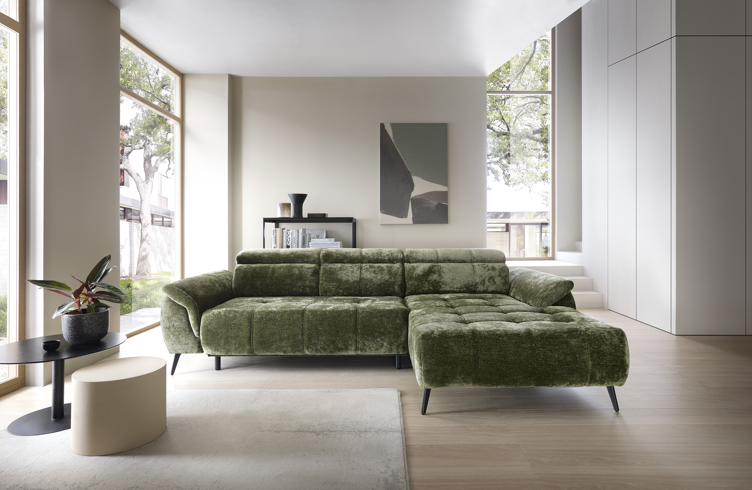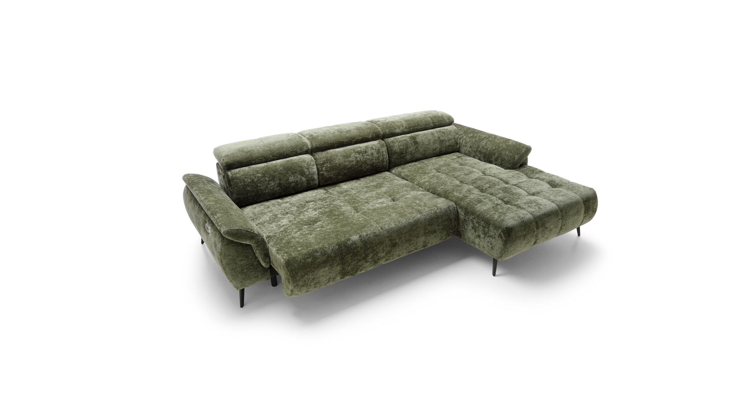 Plišana sjedala pružaju iznimnu udobnost za opuštanje, bilo uz kavu s prijateljima ili ležerno poslijepodne kod kuće uz omiljeno štivo. Veliko sjedalo, visoki nasloni i podesivi nasloni za glavu omogućuju vam udobno opuštanje u vlastitom dnevnom boravku.Električni produžetak sjedala nudi dodatnu udobnost - sjedalo se po potrebi može produžiti do 25 cm. To čini još udobnijim podići noge ili popodnevno odspavati. USB priključak integriran je na bočnoj strani namještaja tako da možete praktično puniti svoj pametni telefon i da vas ne prekidaju dok surfate internetom dok se odmarate.Moderan oblik kutne garniture lijepo stoji u dnevnom boravku te ga ispunjava neobičnom elegancijom i pozitivnom energijom.