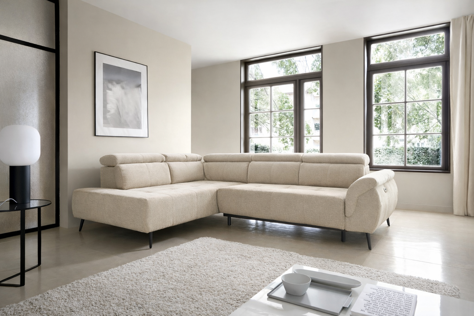 Udobnost odmora osiguravaju meka sjedala, podesivi nasloni za glavu i produženje sjedala do 25 cm. Na taj način dobivate dovoljno prostora za sjedenje i ležanje. Namještaj je izuzetno udoban, što je važno kada se opuštate uz TV, čitate omiljene knjige ili popodnevno drijemate. Kutna garnitura ima i USB ulaz, vrlo koristan za one koji uživaju u dugim telefonskim razgovorima ili surfanju internetom.