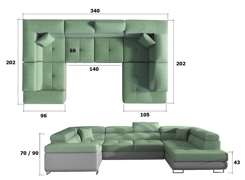 | Dostupne dimenzije | 202x340x90 cm; 202x340x90 cm |