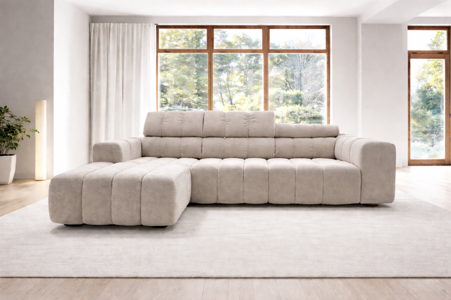 Moduli u kolekciji dopuštaju bilo koju konfiguraciju - spajanjem pojedinih dijelova dobivate komad namještaja koji savršeno odgovara vašim potrebama i uklapa se u prostoriju u koju se postavlja. Možete odabrati module koji će odgovarati svakom interijeru - od manjih sofa ili kutnog namještaja do velikih aranžmana u obliku slova U. Moduli u kolekciji opremljeni su produžetkom sjedala do 25 cm, što će cijeniti oni kojima treba posebno velik prostor za sjedenje ili ležanje za opuštanje. Zanimljivo rješenje može biti korištenje modula za jednosjed bez bočnih dijelova, stvarajući fotelju - udoban dodatak interijeru dnevne sobe. U kolekciji je također dostupan puf koji se može dodati kauču ili kutnoj garnituri kako bi se povećao prostor za sjedenje. Međutim, mnogi će ga korisnici koristiti kao dodatnu garnituru za sjedenje ili, uz stolić za odlaganje, kao stolić za kavu.
