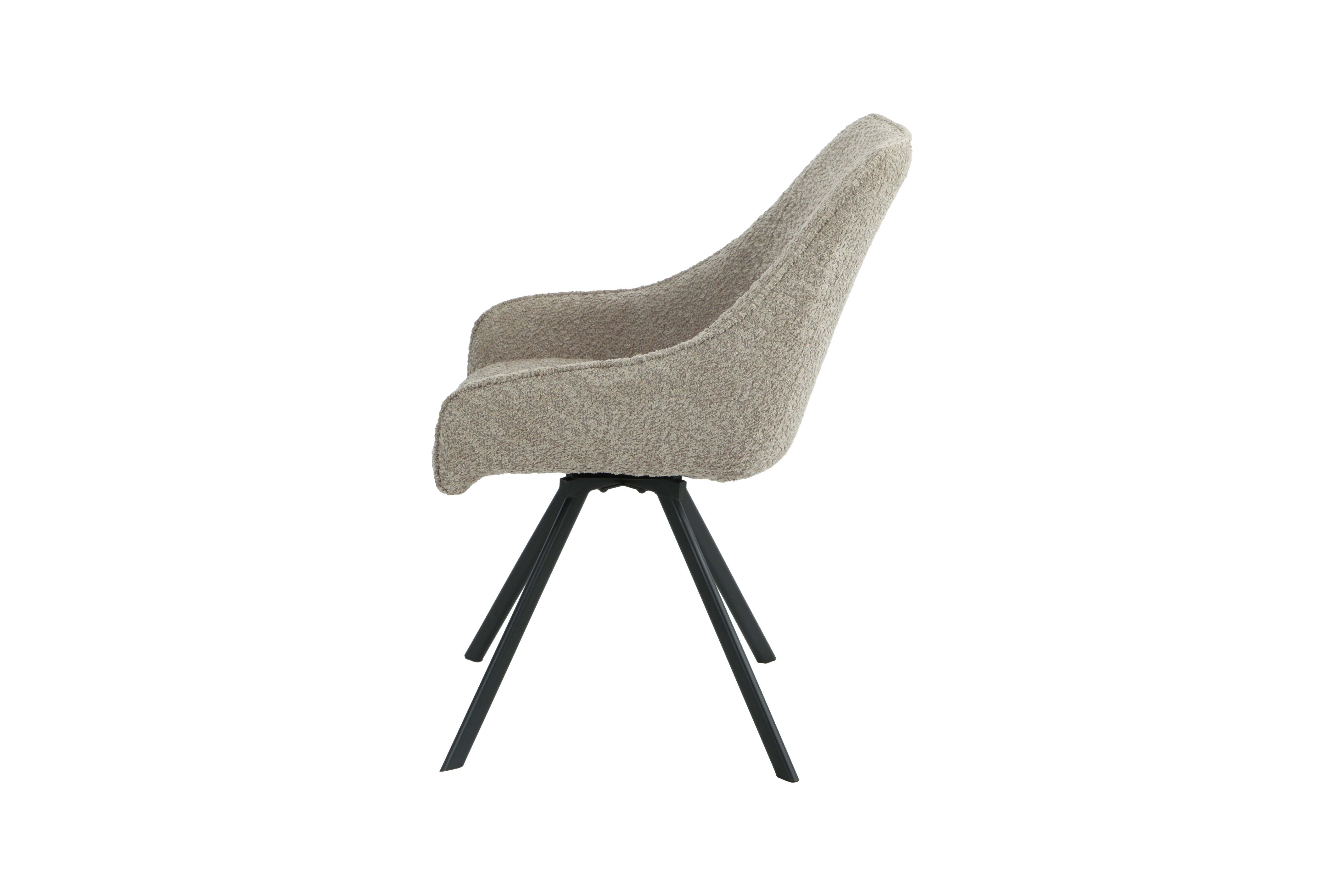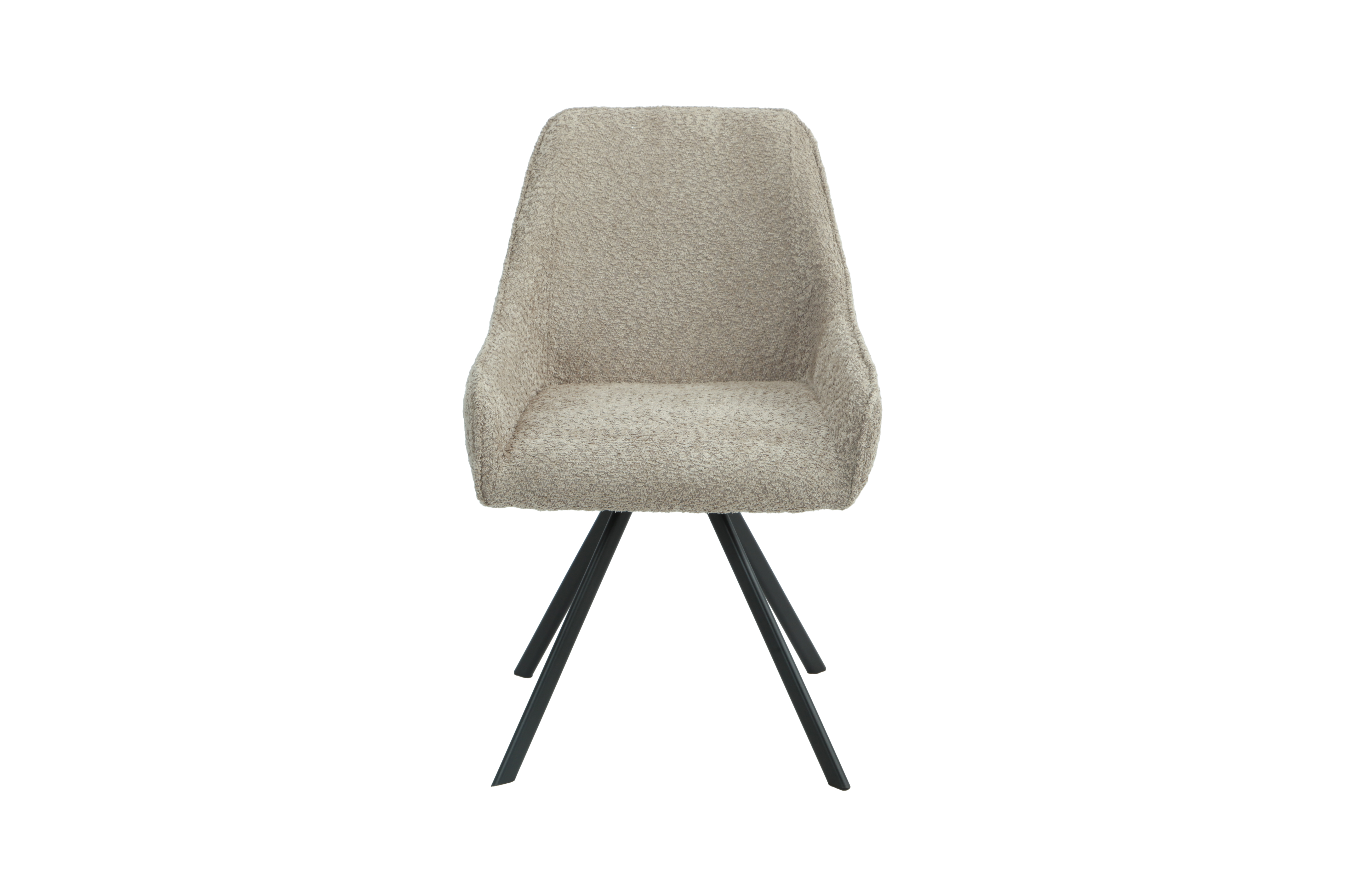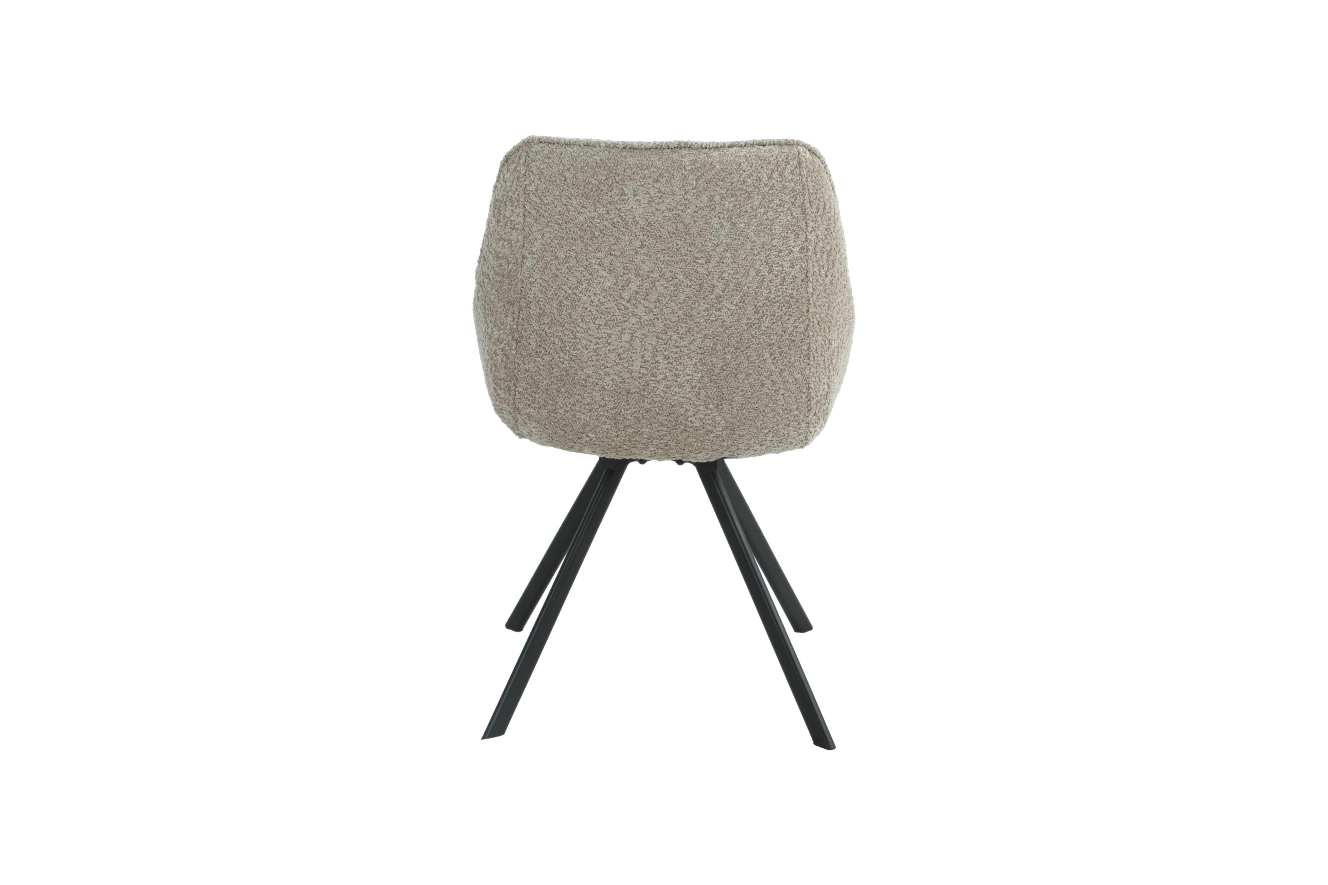 Okretna fotelja od 360° s crnim metalnim okvirom s buklé tkaninom u dvije boje.