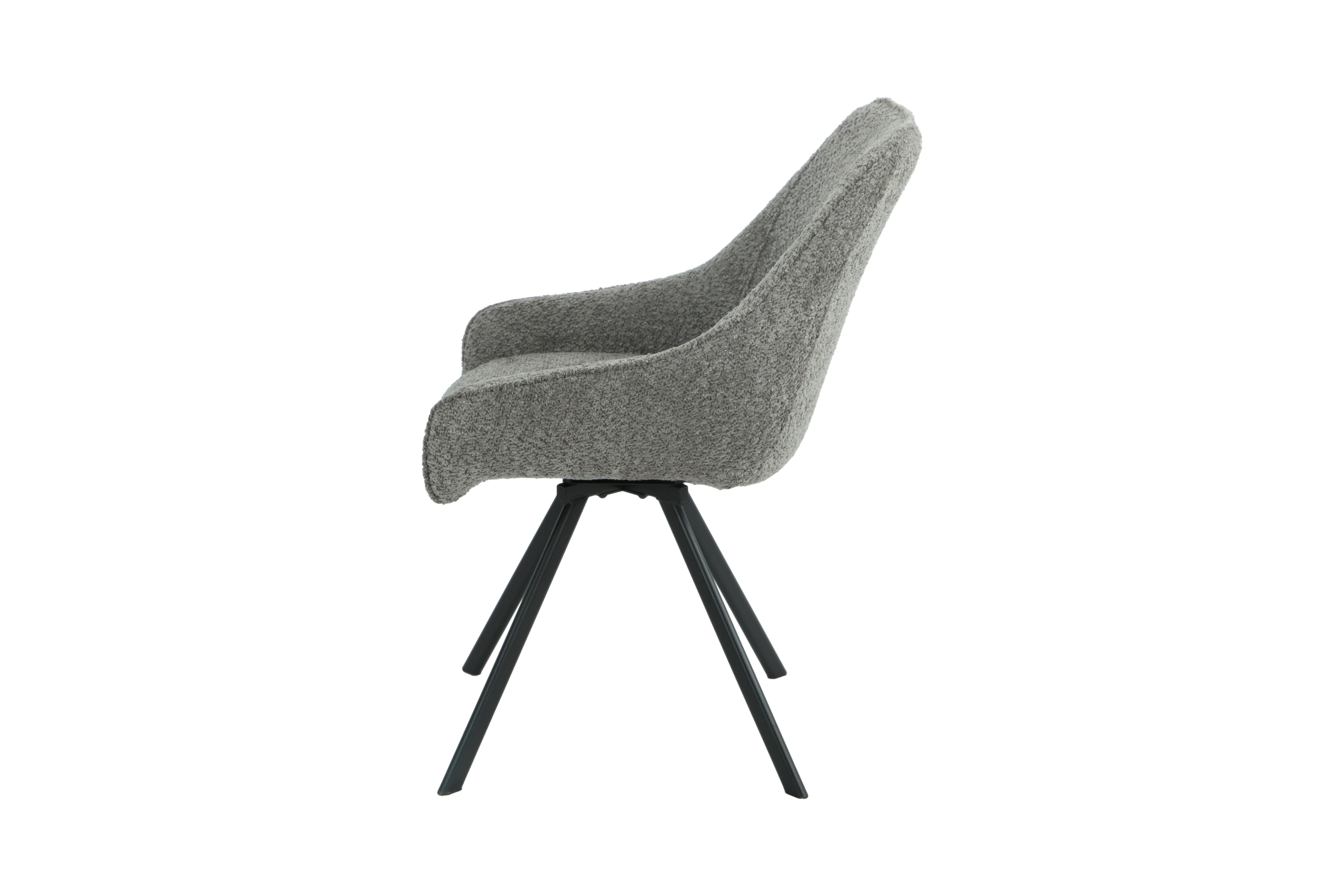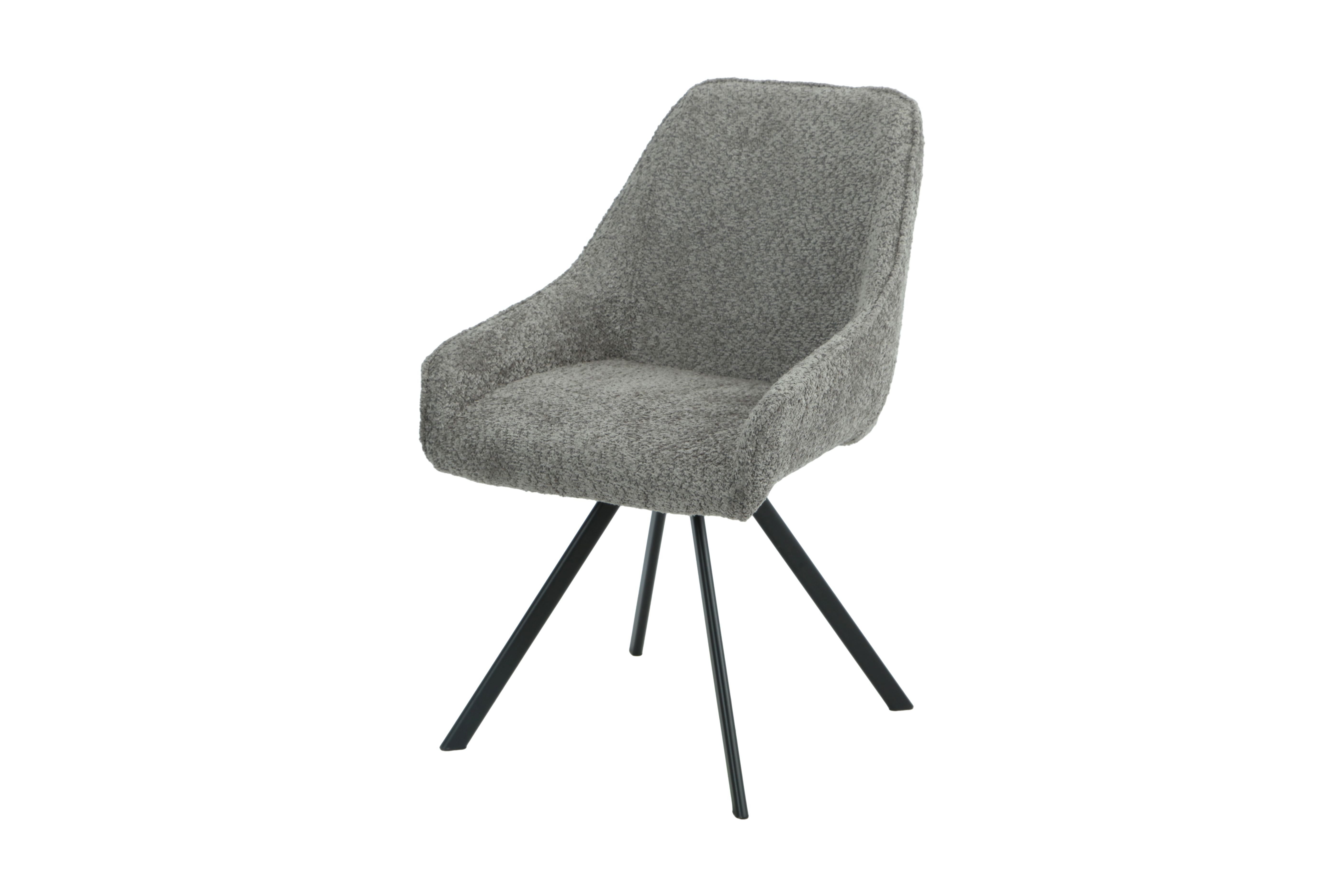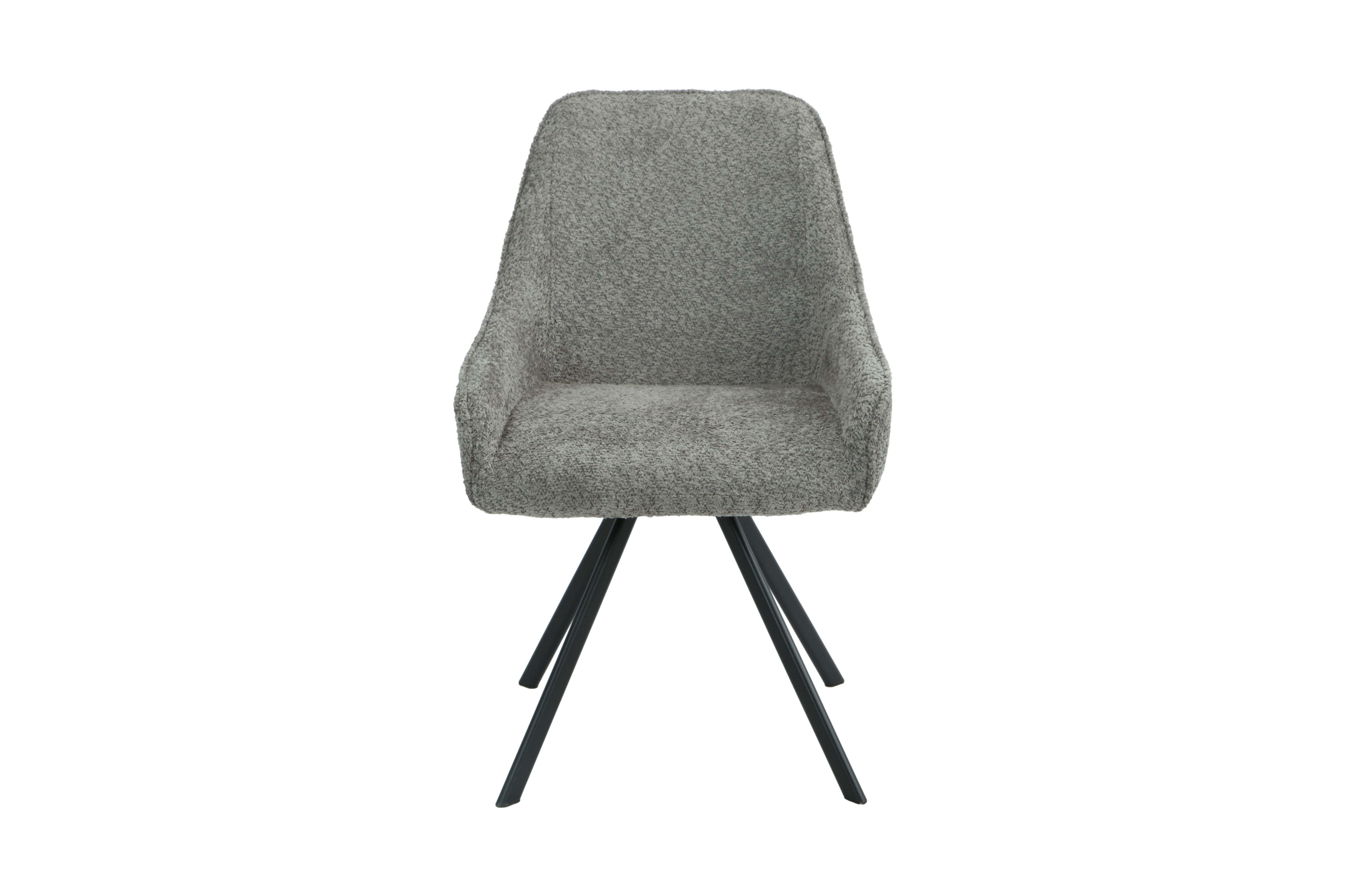 Okretna fotelja od 360° s crnim metalnim okvirom s buklé tkaninom u dvije boje.